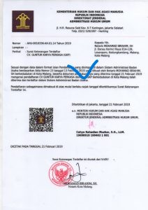 Notaris : SK. Menteri Kehakiman Dan Hak Asasi Manusia Republik Indonesia.